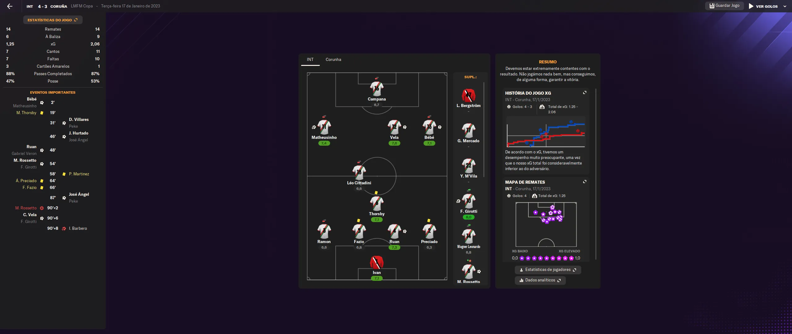 | Name | Jogos | Mins | Gols | Ass | Sofr | C.A. | C.V. | MeC | Class |