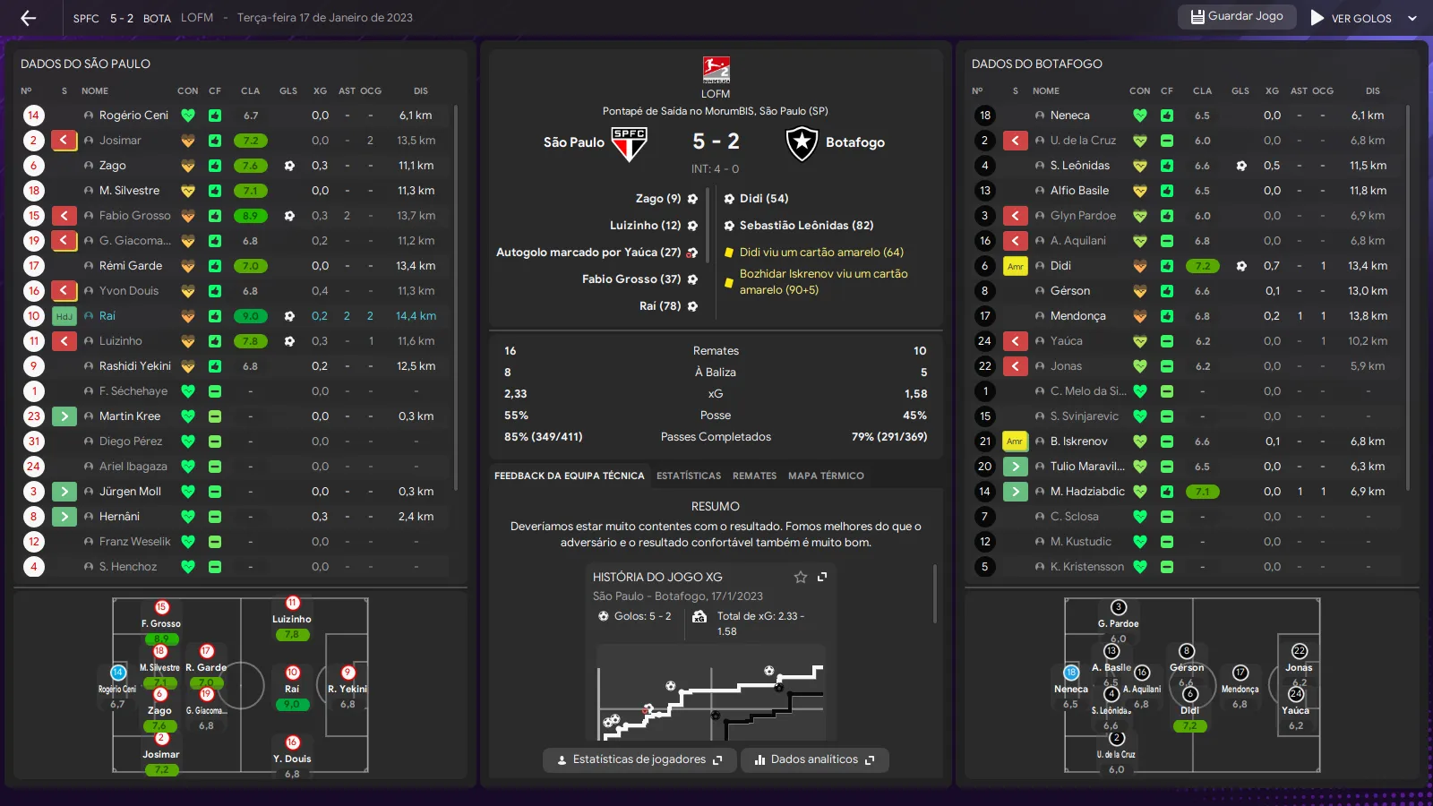| Name | Jogos | Mins | Gols | Ass | Sofr | C.A. | C.V. | MeC | Class |