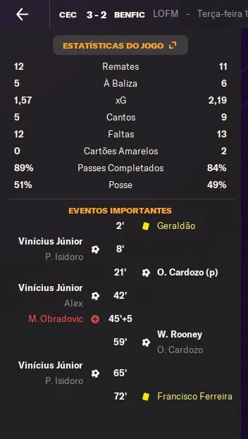 | Name | Jogos | Mins | Gols | Ass | Sofr | C.A. | C.V. | MeC | Class |