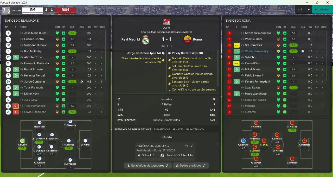 | Name | Jogos | Mins | Gols | Ass | Sofr | C.A. | C.V. | MeC | Class |