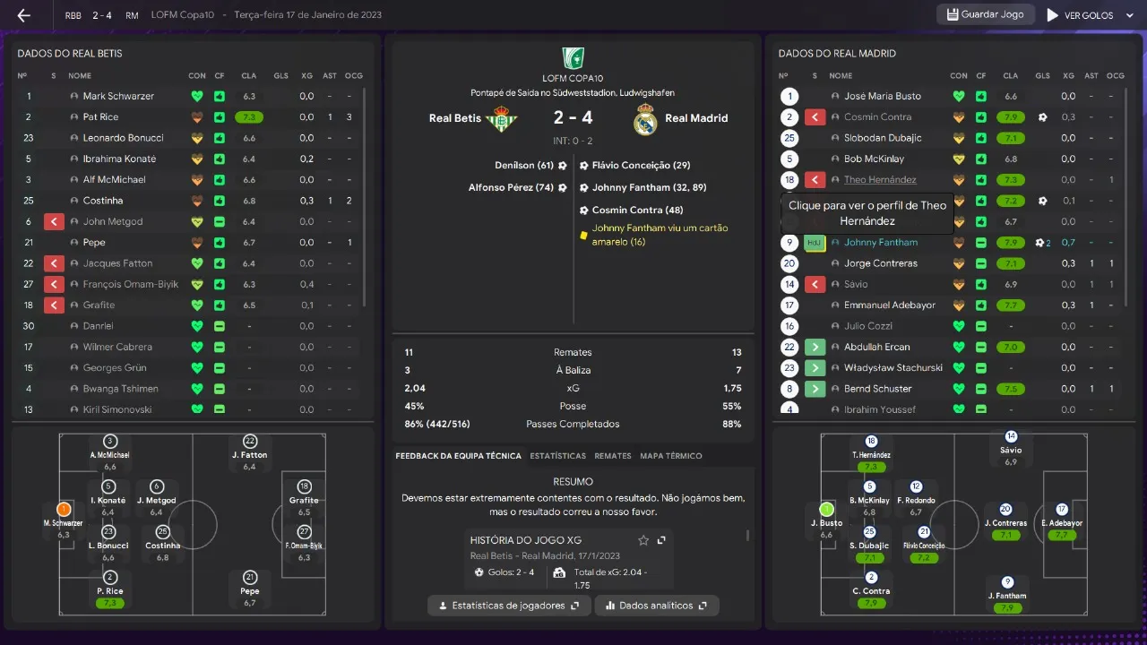 | Name | Jogos | Mins | Gols | Ass | Sofr | C.A. | C.V. | MeC | Class |