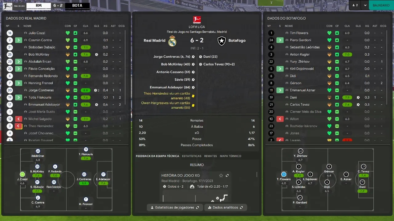 | Name | Jogos | Mins | Gols | Ass | Sofr | C.A. | C.V. | MeC | Class |