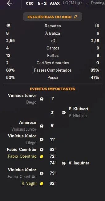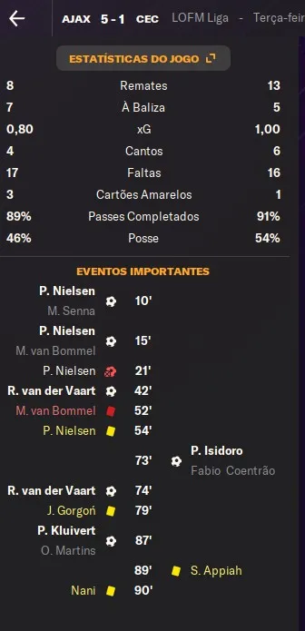 | Name | Jogos | Mins | Gols | Ass | Sofr | C.A. | C.V. | MeC | Class |