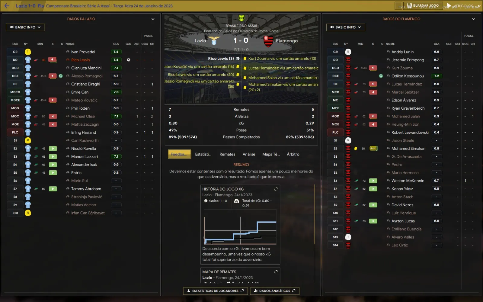 | Name | Jogos | Mins | Gols | Ass | Sofr | C.A. | C.V. | MeC | Class |