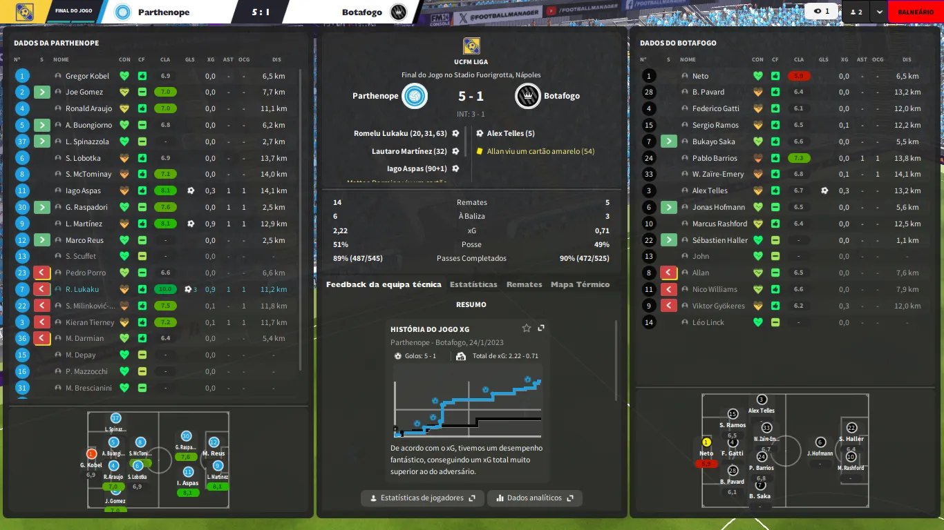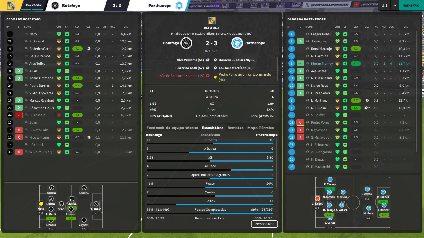 |  Alex Telles | 2 | 180 | 1 | 0 | 0 | 0 | 0 | 0 | 6.7 |