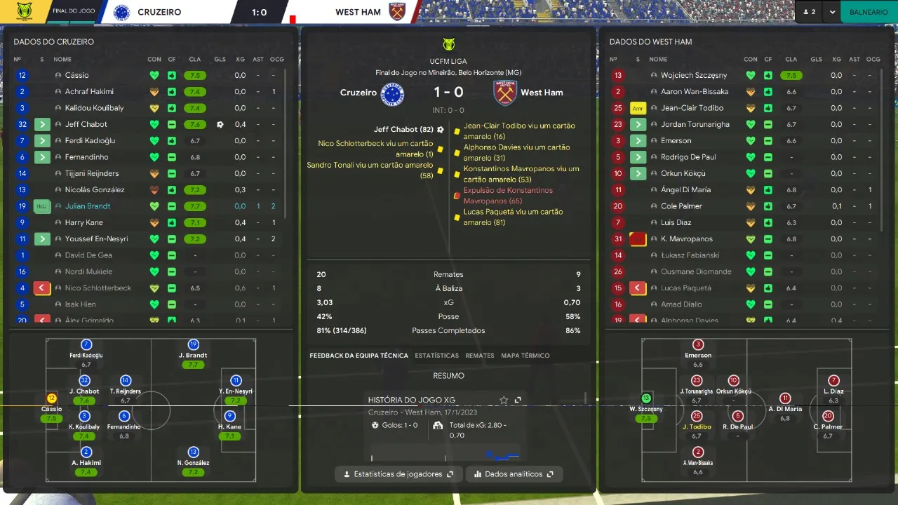 |  Cássio | 2 | 180 | 0 | 0 | 2 | 0 | 0 | 0 | 7.3 |