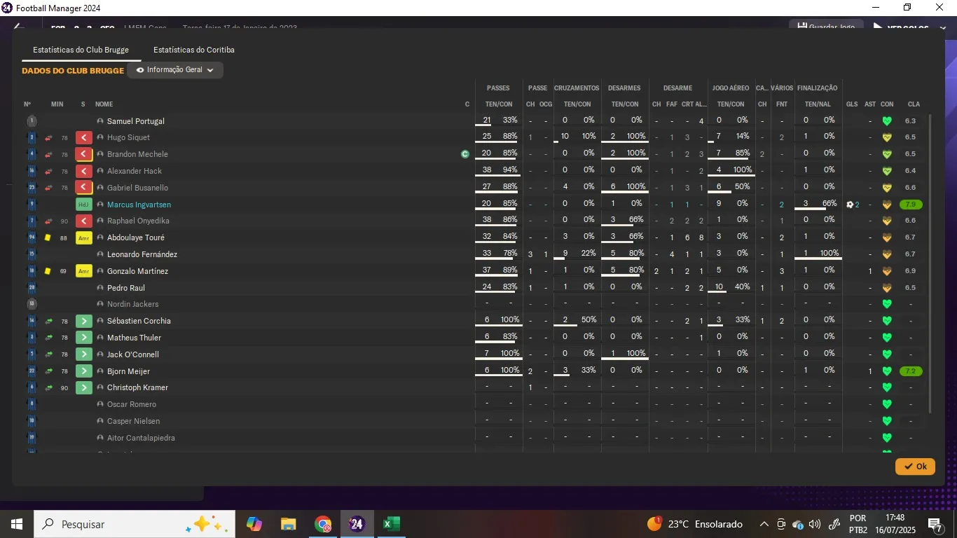 | Name | Jogos | Mins | Gols | Ass | Sofr | C.A. | C.V. | MeC | Class |