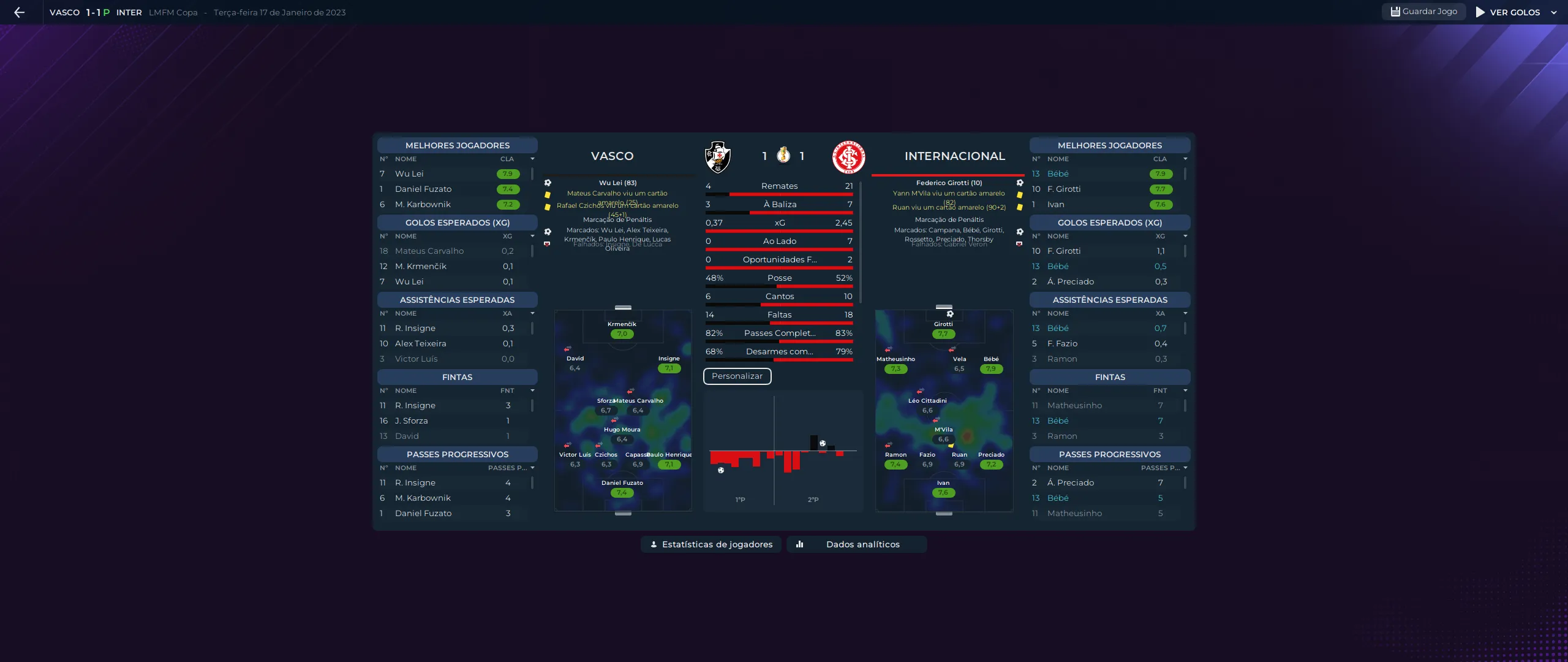 | Name | Jogos | Mins | Gols | Ass | Sofr | C.A. | C.V. | MeC | Class |