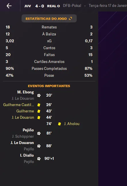 Name | Jogos | Mins | Gols | Ass | Sofr | C.A. | C.V. | MeC | Class |