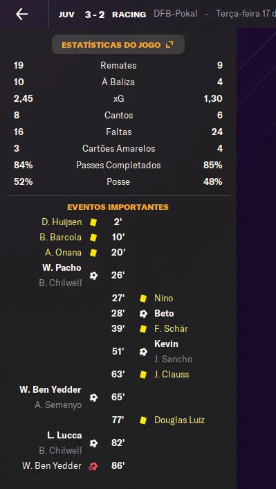 | Name | Jogos | Mins | Gols | Ass | Sofr | C.A. | C.V. | MeC | Class |