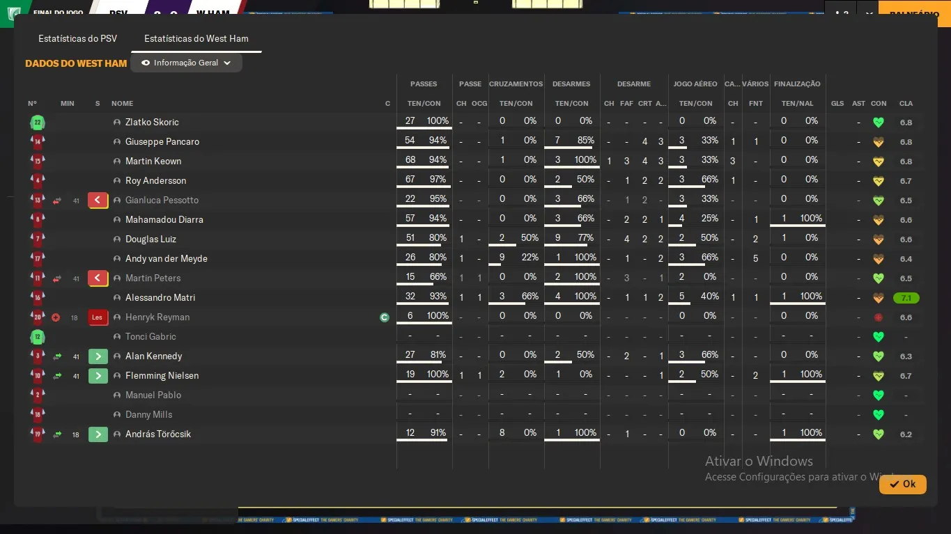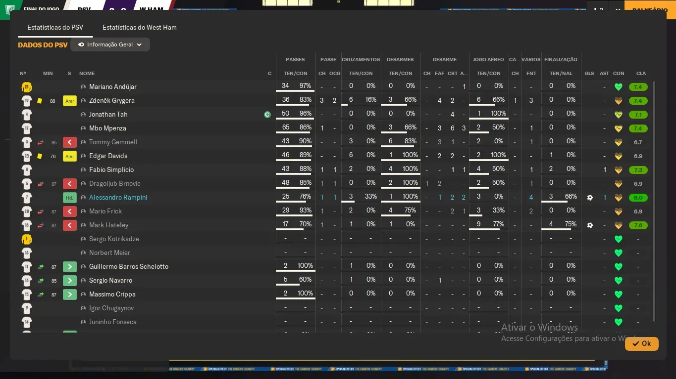 Name | Jogos | Mins | Gols | Ass | Sofr | C.A. | C.V. | MeC | Class |