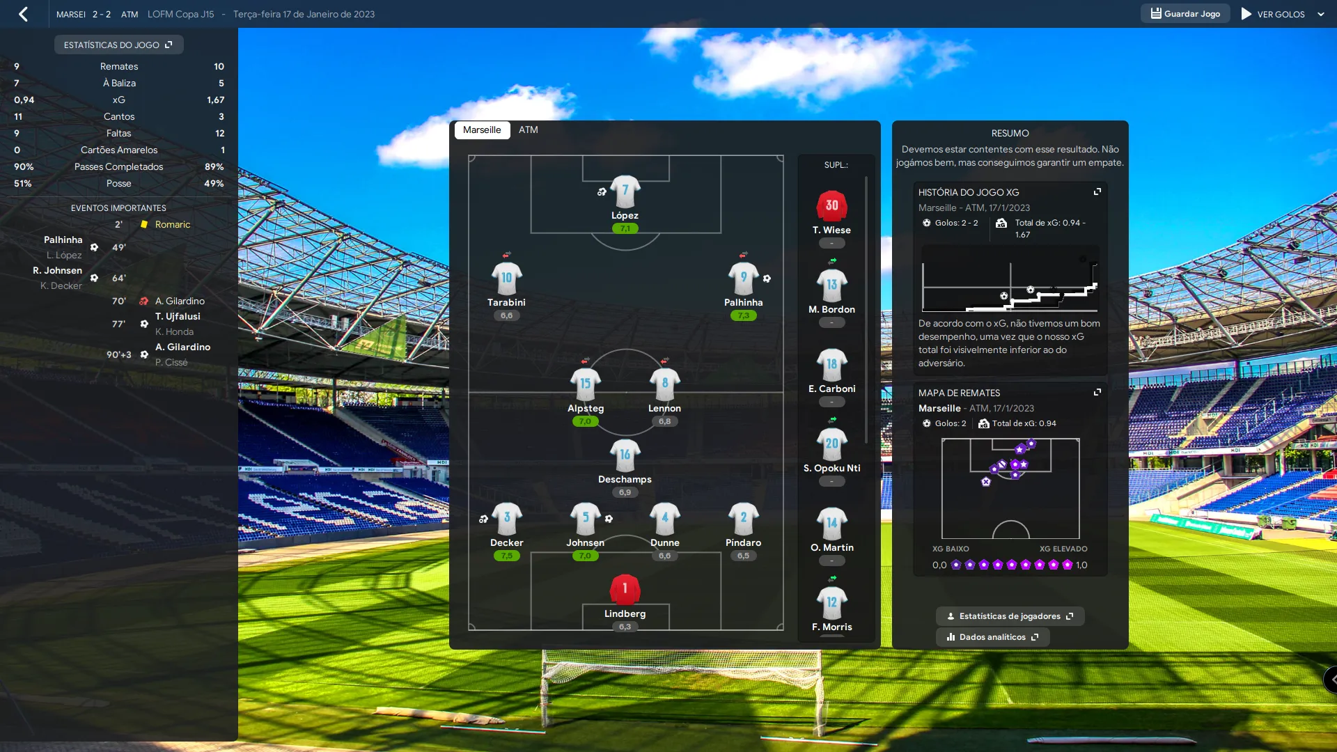 Name | Jogos | Mins | Gols | Ass | Sofr | C.A. | C.V. | MeC | Class |