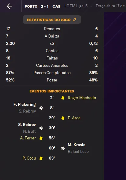 | Name | Jogos | Mins | Gols | Ass | Sofr | C.A. | C.V. | MeC | Class |
