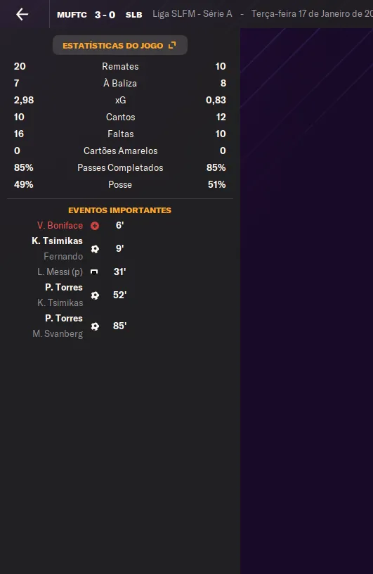 Name | Jogos | Mins | Gols | Ass | Sofr | C.A. | C.V. | MeC | Class |