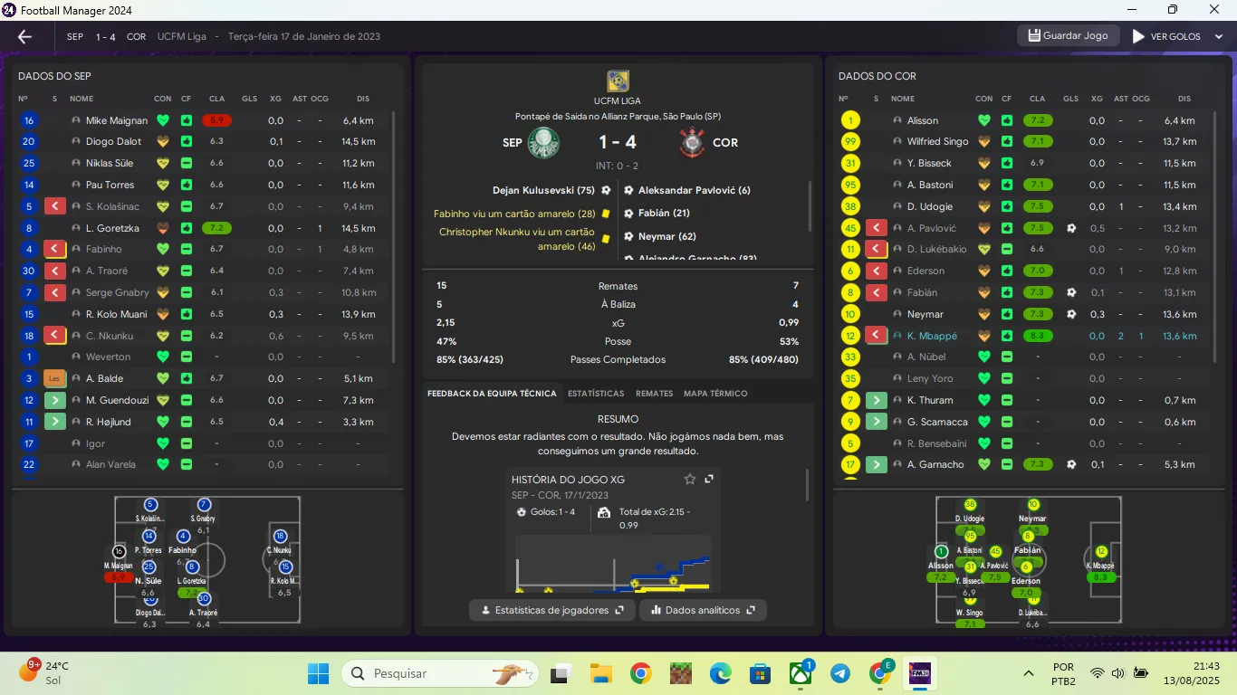 | Name | Jogos | Mins | Gols | Ass | Sofr | C.A. | C.V. | MeC | Class |