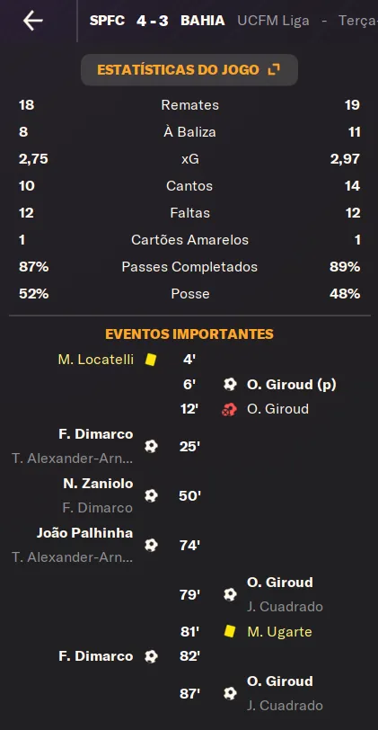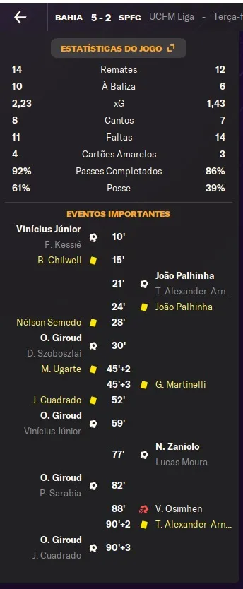 | Name | Jogos | Mins | Gols | Ass | Sofr | C.A. | C.V. | MeC | Class |