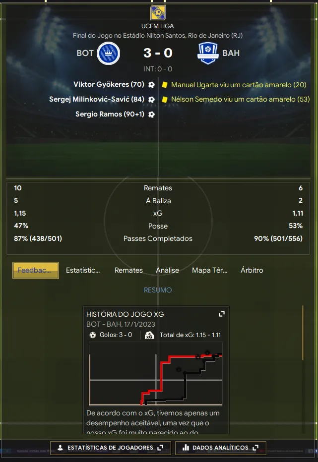 | Name | Jogos | Mins | Gols | Ass | Sofr | C.A. | C.V. | MeC | Class |