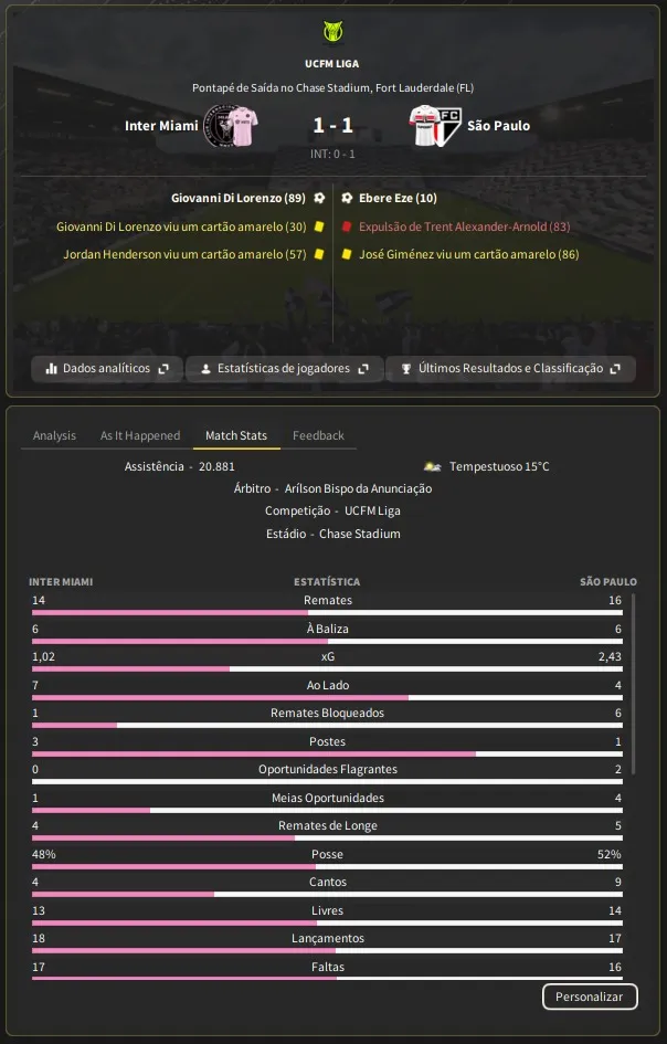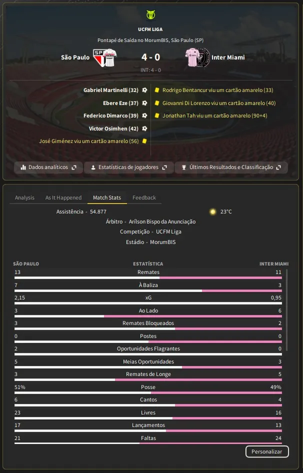 | Name | Jogos | Mins | Gols | Ass | Sofr | C.A. | C.V. | MeC | Class |