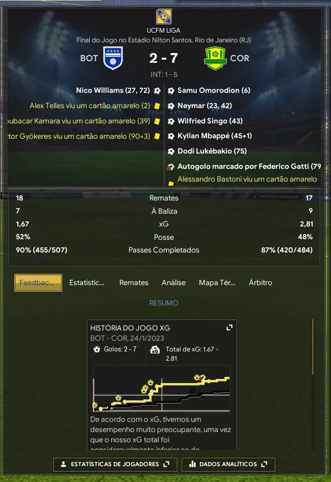 | Name | Jogos | Mins | Gols | Ass | Sofr | C.A. | C.V. | MeC | Class |