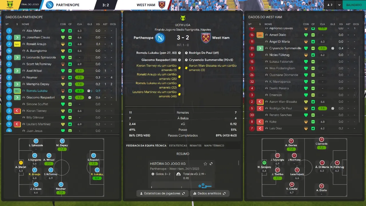 | Name | Jogos | Mins | Gols | Ass | Sofr | C.A. | C.V. | MeC | Class |