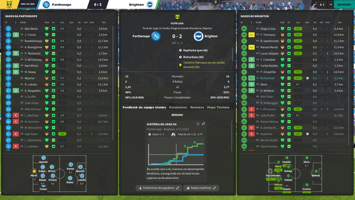 | Name | Jogos | Mins | Gols | Ass | Sofr | C.A. | C.V. | MeC | Class |